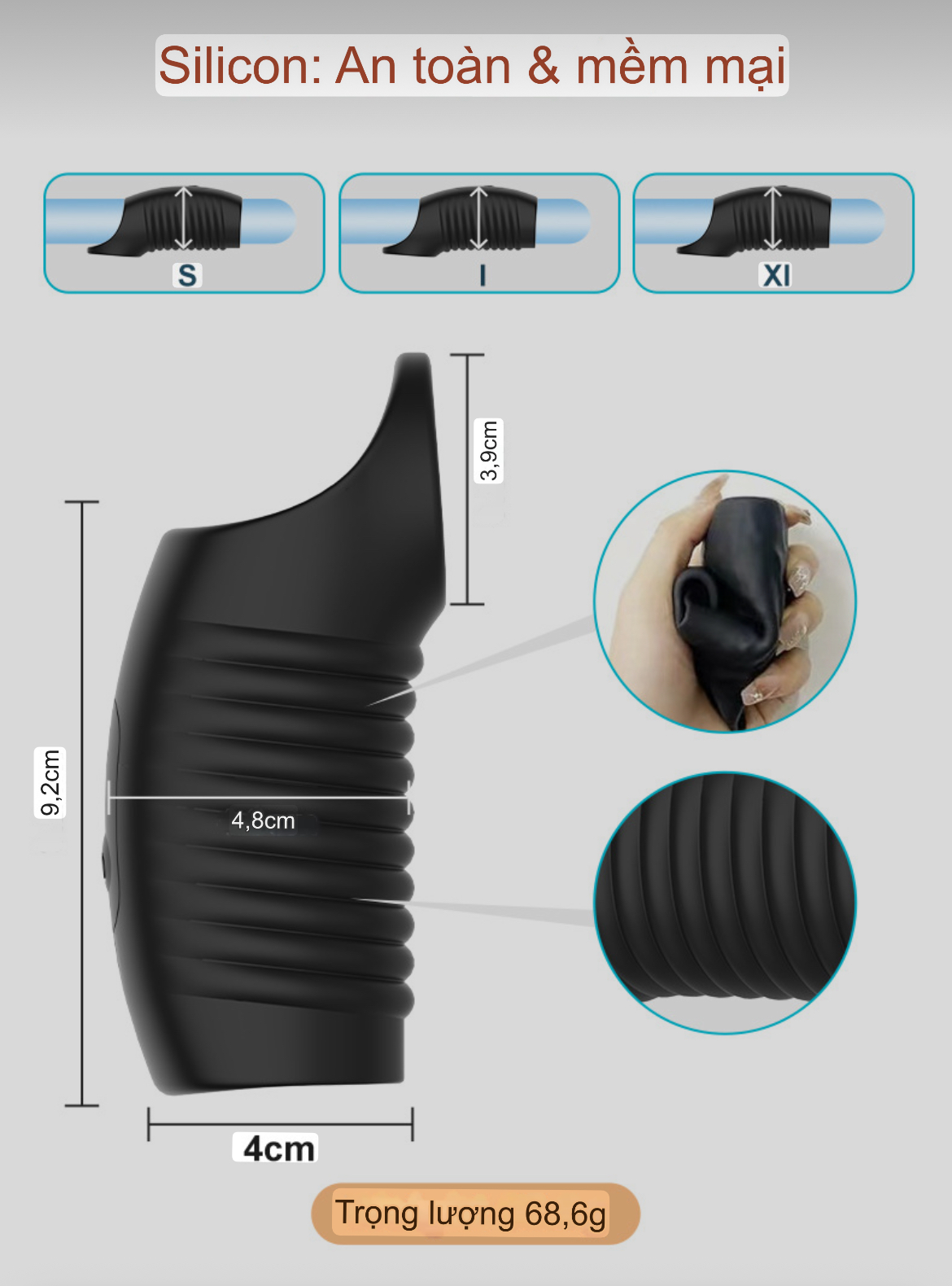 Với thiết kế hình con nhộng với những đường vân được điêu khắc điệu nghệ sẽ là chủ lực chính cho độ ma sát làm kích thích bên trong các nàng với quai đeo vào bìu dương sẽ dễ dàng cố định nhưng lại không gây bí da vì là silicon cao cấp và có những lỗ thoáng khí li ti sẽ ôm sát và không gây co bóp gây đau đơn.